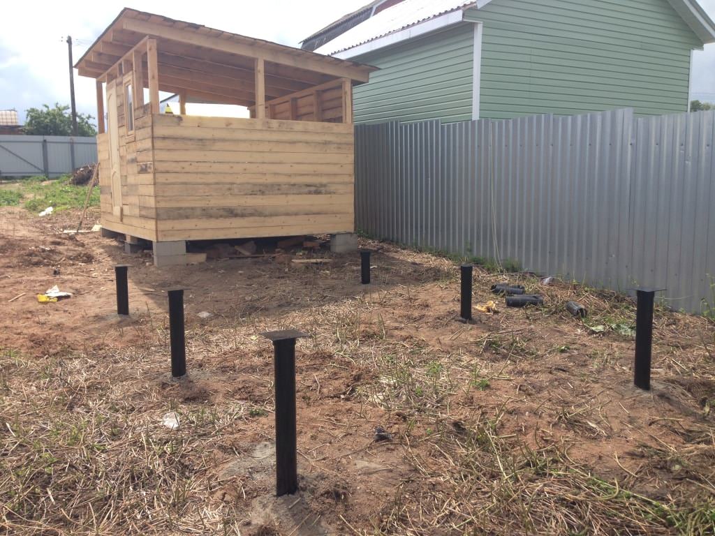Комплект свай для свайно-винтового фундамента вкручивают вручную или при помощи спецтехники в размеченных местах.